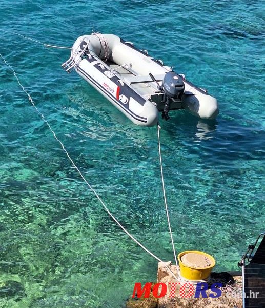 Novo kupljeno u Hondi i Yamahi sa računima na fizičko lice, početkom 6 mjeseca Gumenjak Honda motor Yamaha 6 ks reg. Kaštel Gomilica kasko osiguran 1 god. Ima skale, sidro, vreču za brod i osiguranje motora protiv krađe, rezervar 12 l, konope, kolutur, nosač motora na suhom itd sve skupa plačeno oko 4000€ . Bio je u moru do 25 08 ali iz posebnih razloga nije koristen, ima samo 3 sata rada. Nakon što je izvađen generalno je očiščen i premazan sa posebnom tekučinom za gumene čamce. Motor je bio u servisu Yamahe gdje je konzerviran. Sada je pohranjen na suhom i napuhan po savjetu servisa Honde,gdje je i kupljen. Ove gume od skutera su bile bočno pričvrščene na rivi di je bio vez tako da štite brod prilikom ulaska u njega sa rive.