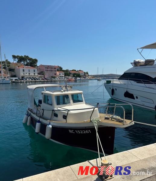 Dodatna oprema • sidreno vitlo 500 W (12 V, inox) • sidro 7,5 kg s inox okretnom spojkom • epoksi zaštita podvodnog dijela + antifouling • stol u kokpitu (mahagonij) • tik laminat u podnicama • kuhalo na plin sa sudoperom (inox) + plinska boca • hladnjak 49 L (12 V) • tank za vodu 100 L • električna pumpa za vodu s tušem • WC Jabsco (ručni) • hidraulično upravljanje • jastuci ležaja i separea • inox bimini tenda s bočnim zaštitama (novo 2023.) • inox krmena ograda • Fusion MS-RA70 bluetooth radio + unutarnji i vanjski zvučnici • Raymarine GPS / fishfinder s kartom Jadrana • solarni panel • hidraulični flapsovi • 2 sklopive tikove klupice